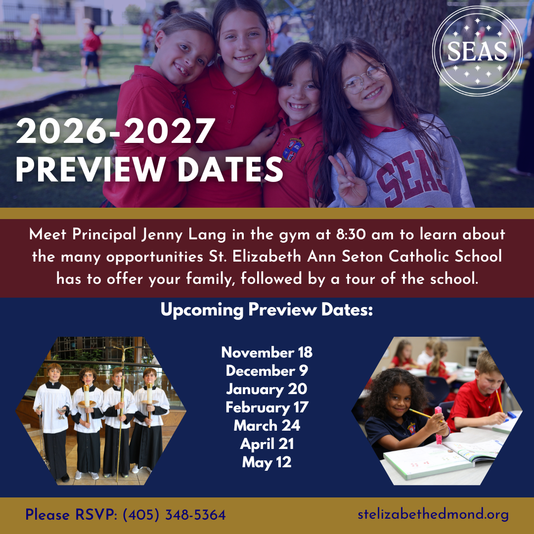 Our Preview Events are at 8:30 am with coffee provided. During the event, Mrs. Lang, Principal, will share the mission and core values of the school. You will also get to hear from Christy Layton, Admissions Coordinator, and a current parent. Families will then take a tour of the campus in action. To register for one of our Preview Events, click one of the links below or RSVP to cfarley@seasok.org or (405) 348-5364.